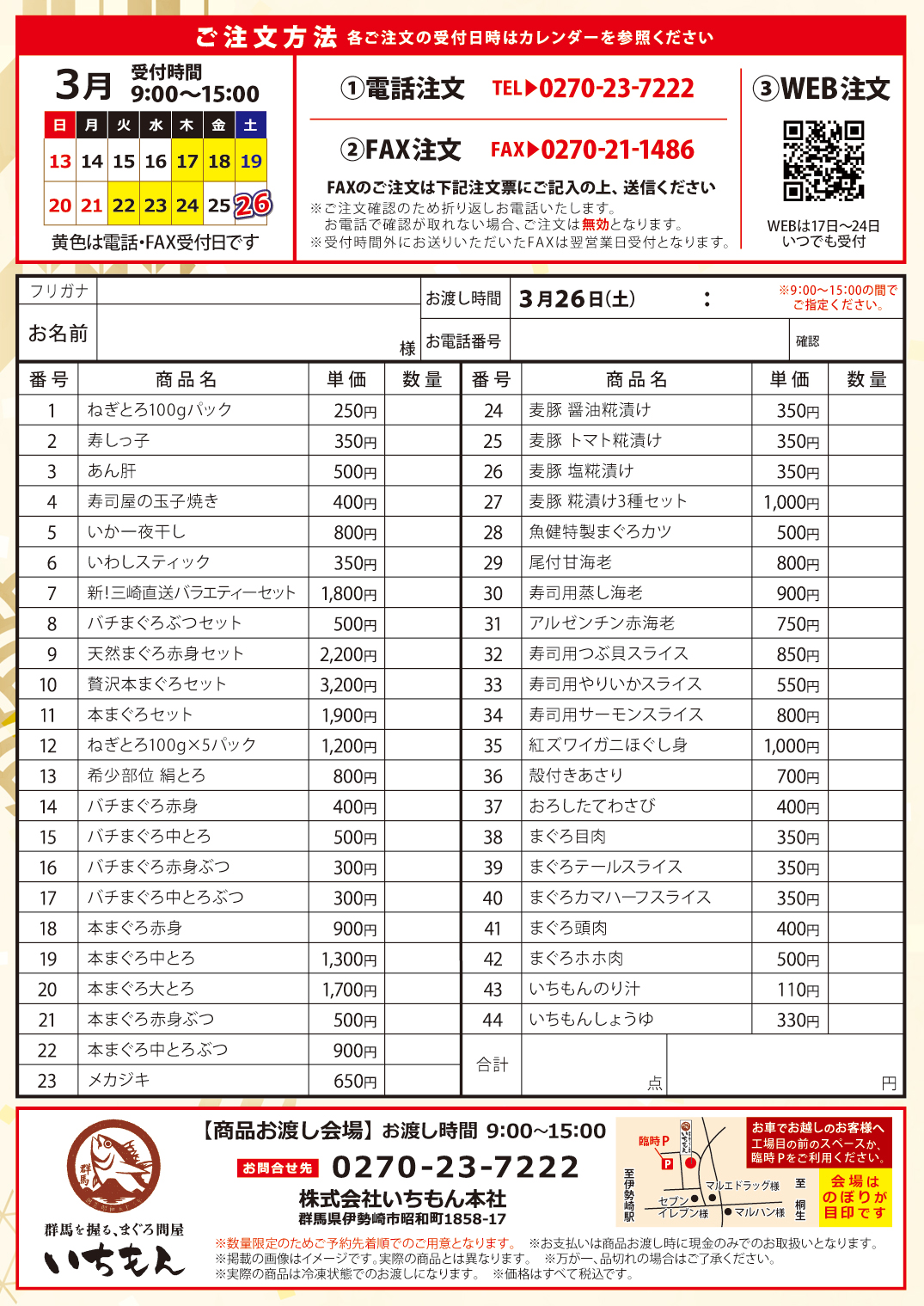①お電話でご注文⇛0270−23−7222までお気軽にお電話ください!