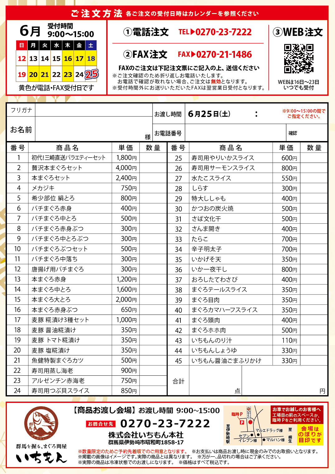 ②FAXでご注文⇛ご注文用紙を印刷ご記入の上、