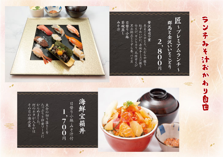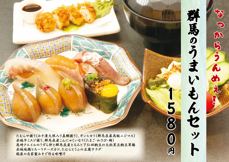 地元を愛し日本一群馬ネタを扱う回転寿司が作る、群馬と金沢いいとこどりランチをぜひお楽しみください。