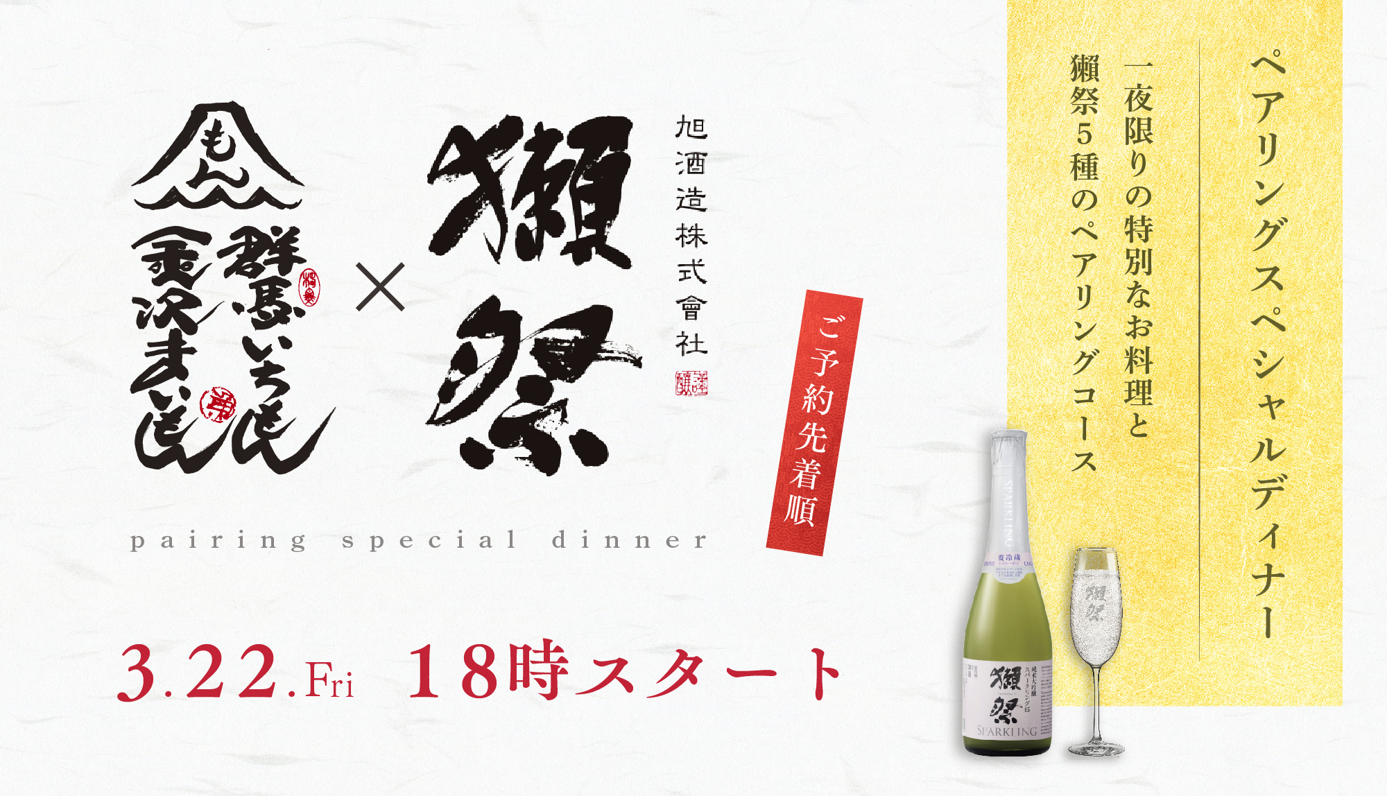 【 一夜限りの特別なお料理と獺祭5種のペアリングコース 1人前 16,500円(税込) 】